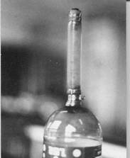 それにボトルの耐圧は相当強い(実際やってみたが9気圧でもボトルは破壊しなかった)のに,いくらゴム栓をきつく押し込んでも,4気圧程度でロケットは自然にゴム栓から離れてしまいました。これではそれほど大きな飛距離は望めません。